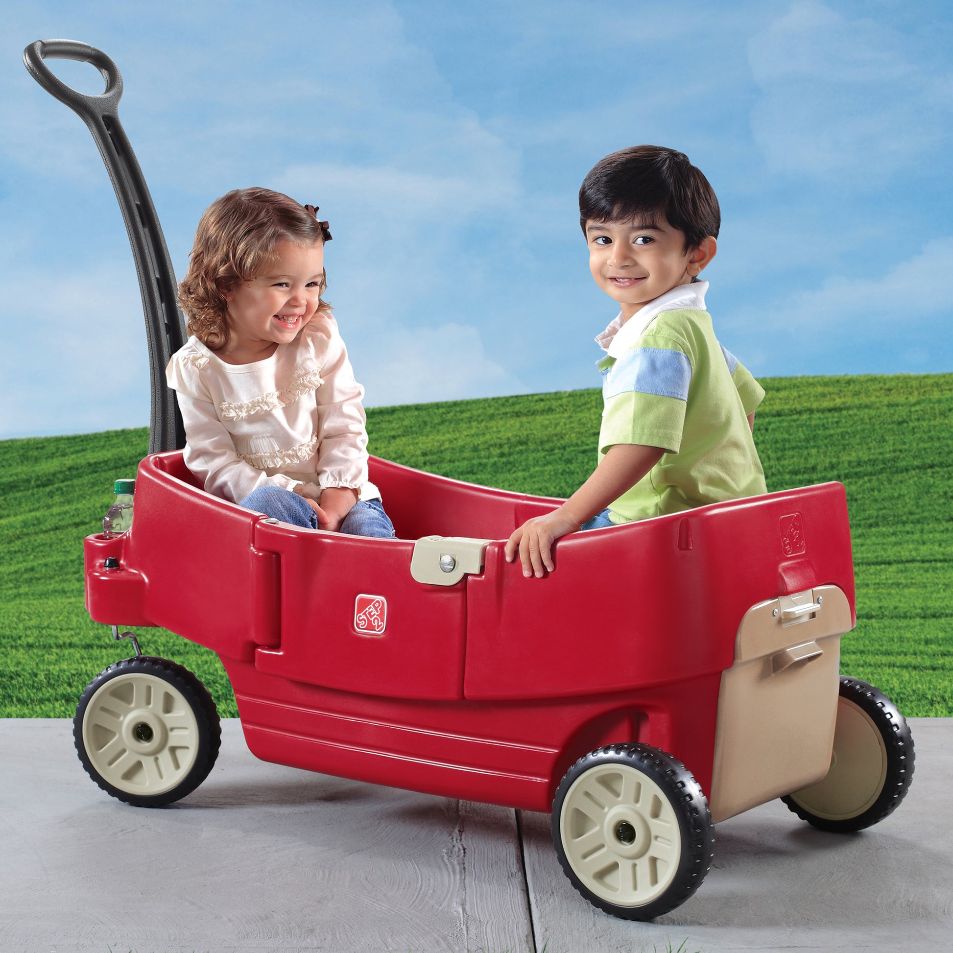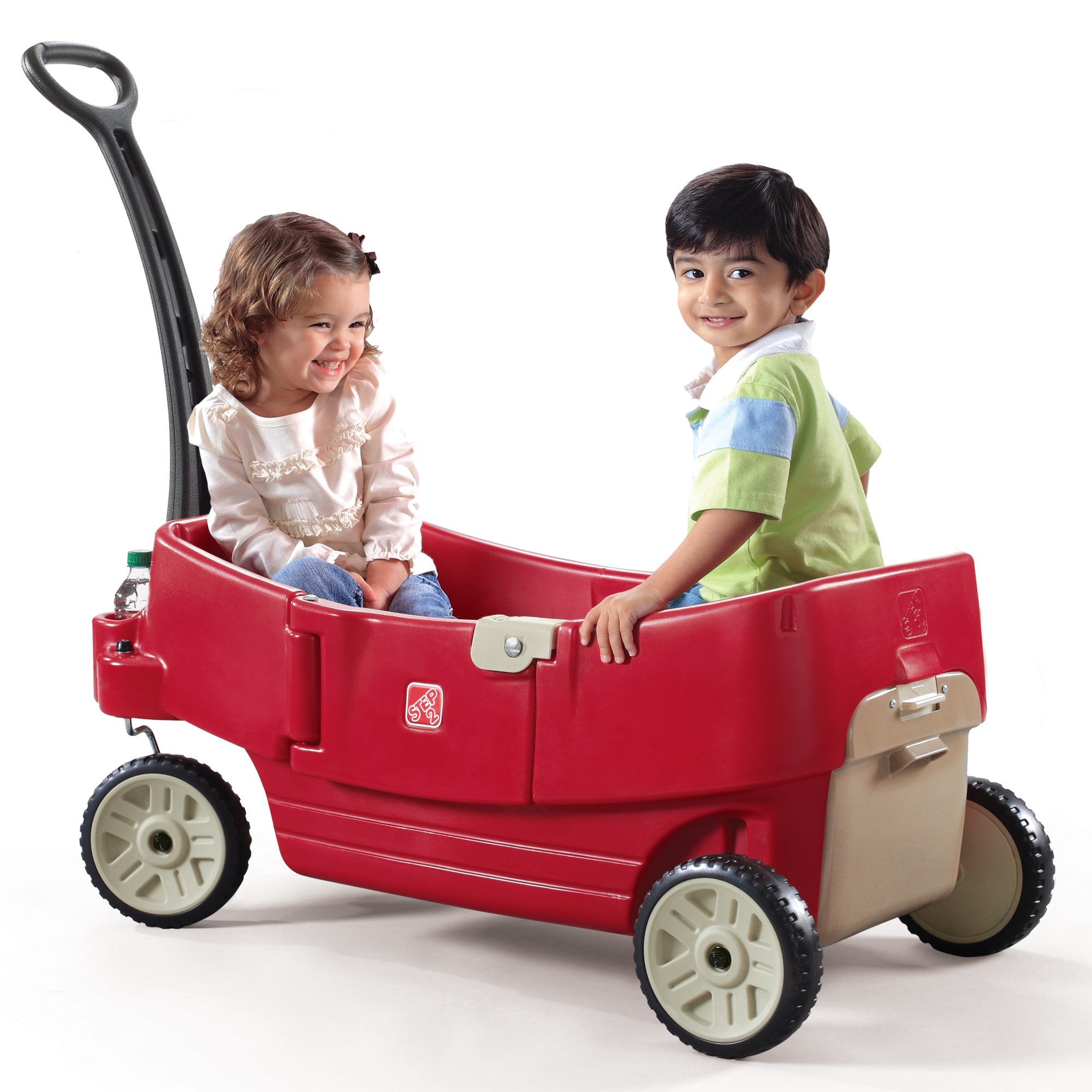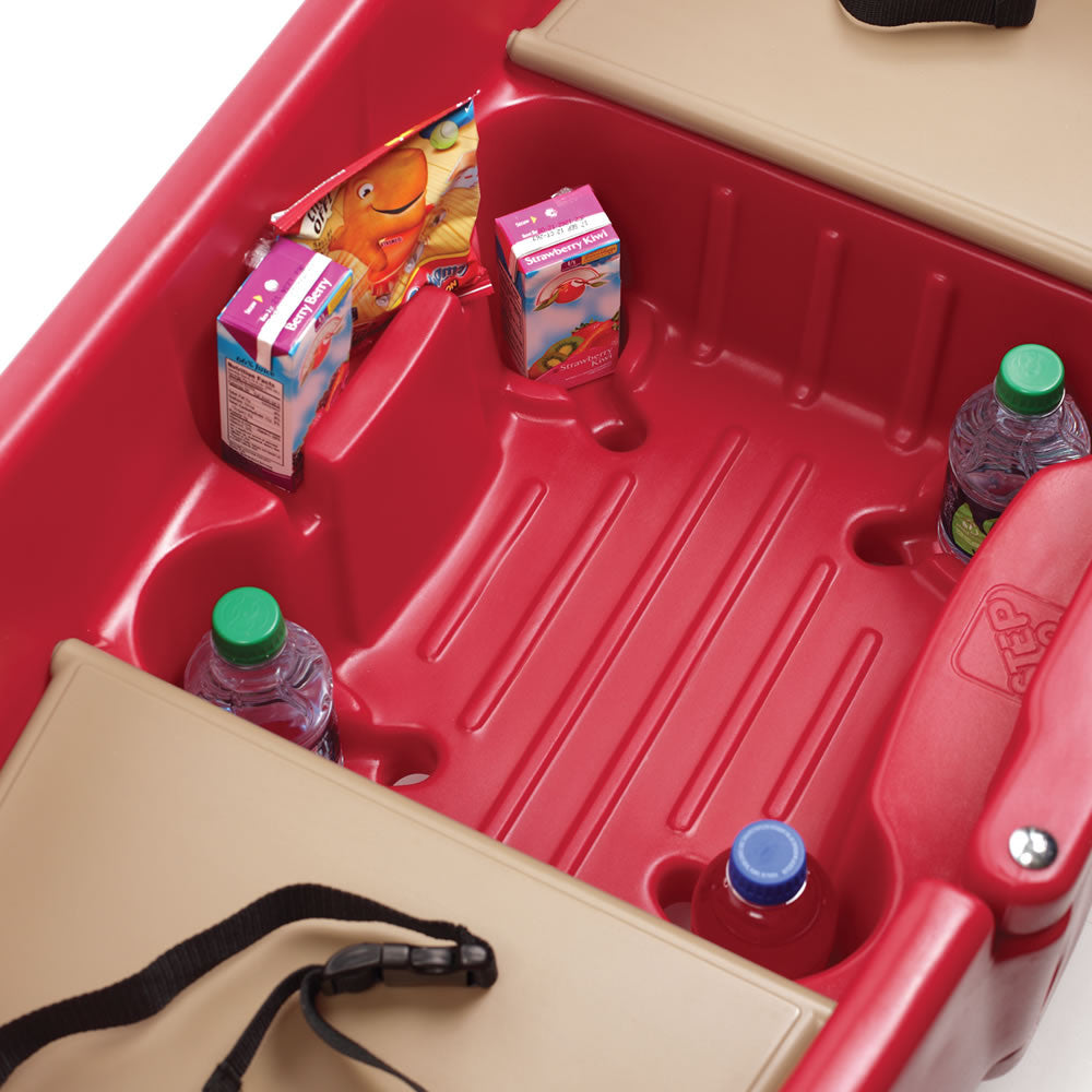 El All Around Wagon de Step2 es un vagón multifunciones que acomoda fácilmente accesorios o el lunch de los pequeños. Es fácil de guardar y llevar en el auto ya que la manija se dobla y el techo de tela es removible. Elaborado en un material altamente resistente a altas temperaturas, proporciona facilidad de limpieza. Hecho en EUA con partes de EEUU e importadas de China.