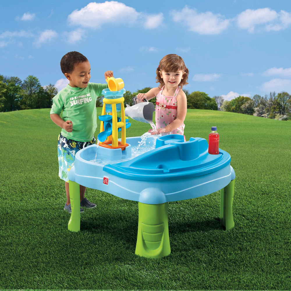 Con la Splash & Scoop Bay de Step2 elija entre la arena, el agua o ambos para este juego Hecho en EUA con partes de EEUU e importadas. Accesorios hechos en China.