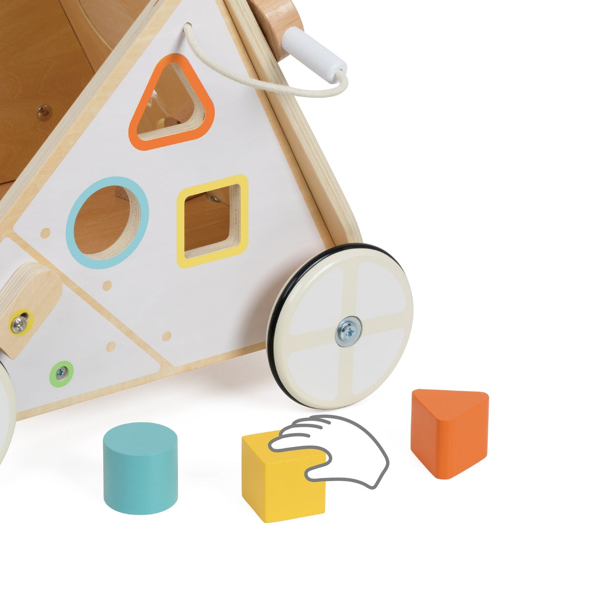 El robot también tiene muchas características, incluido un xilófono, un clasificador de formas 3D, engranajes que funcionan, un espejo, un compartimento de almacenamiento y más. ¡Ven y explora este maravilloso compañero!