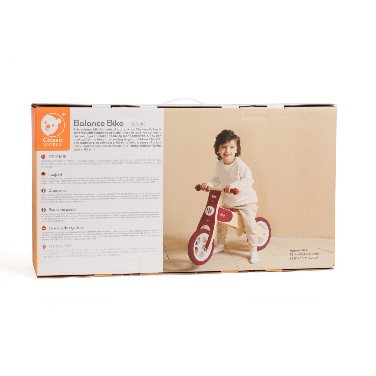 Esta bicicleta de equilibrio está hecha de robusta madera sólida. El manubrio está recubierto de goma para proporcionar mayor agarre. El asiento tiene una capa acolchonada para que andar en bicicleta sea más cómodo. También puedes ajustar la altura según la altura de tus hijos. Y las ruedas están hechas de material de goma para proteger la superficie del piso contra daños.