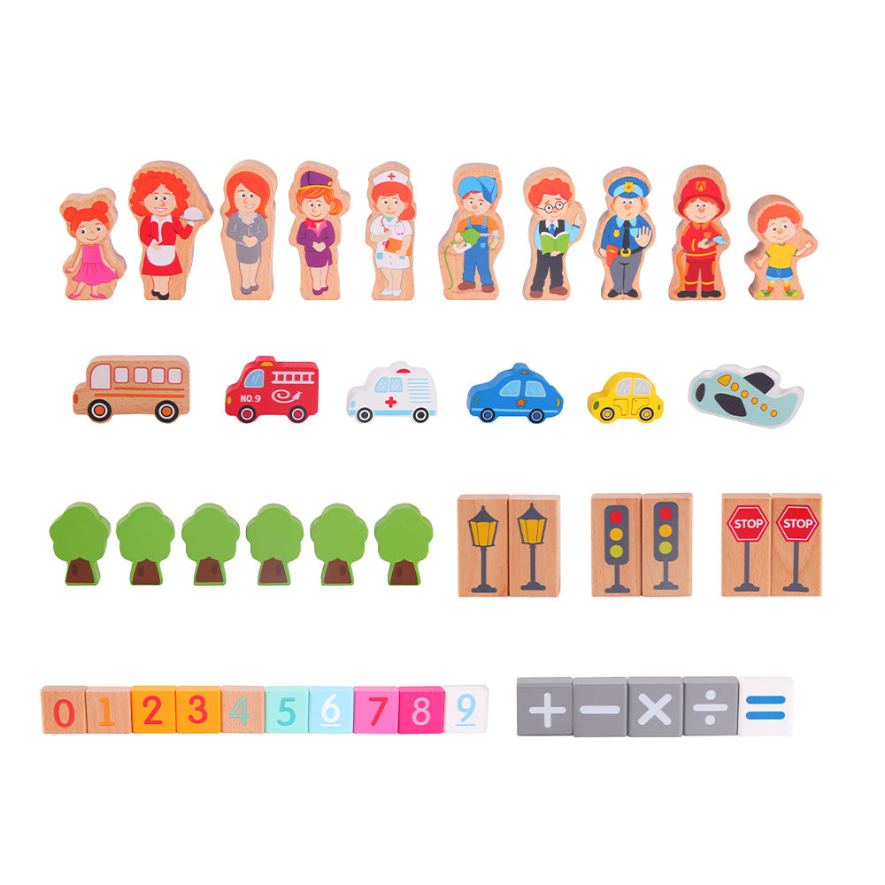 Incluye pequeñas figuras de personas de madera que brindan vida a la ciudad y generan escenarios de juego imaginativo.