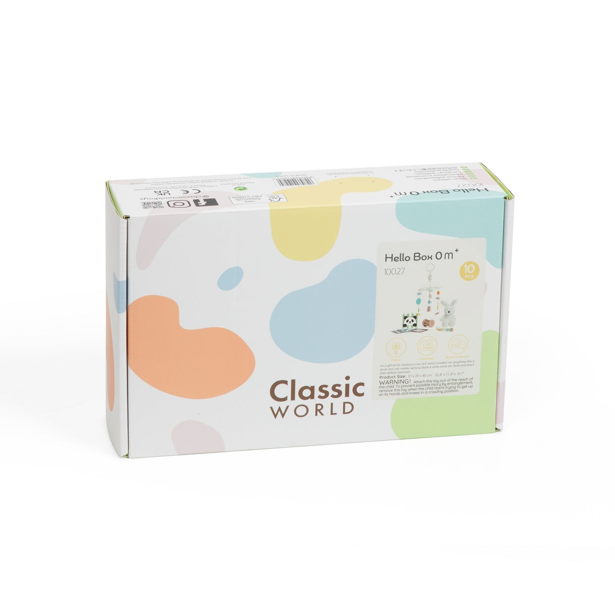 Es un kit de regalo para recién nacidos y bebés pequeños que incluye hermosos juguetes como un muñeco de peluche, un móvil para cuna, tarjetas sensoriales en blanco y negro, etc. Desarrolla y dirige sus habilidades de forma equilibrada.