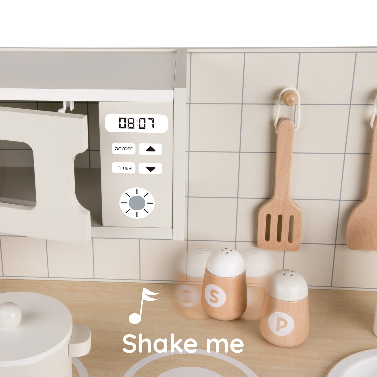 Con esta moderna cocina multifuncional, los niños pueden preparar solos comida deliciosa para su familia. Abra el grifo para "lavar" frutas y verduras y luego "cocinar" con los ingredientes preparados. Esta cocina permite a los niños vivir la experiencia completa de ser un pequeño chef.