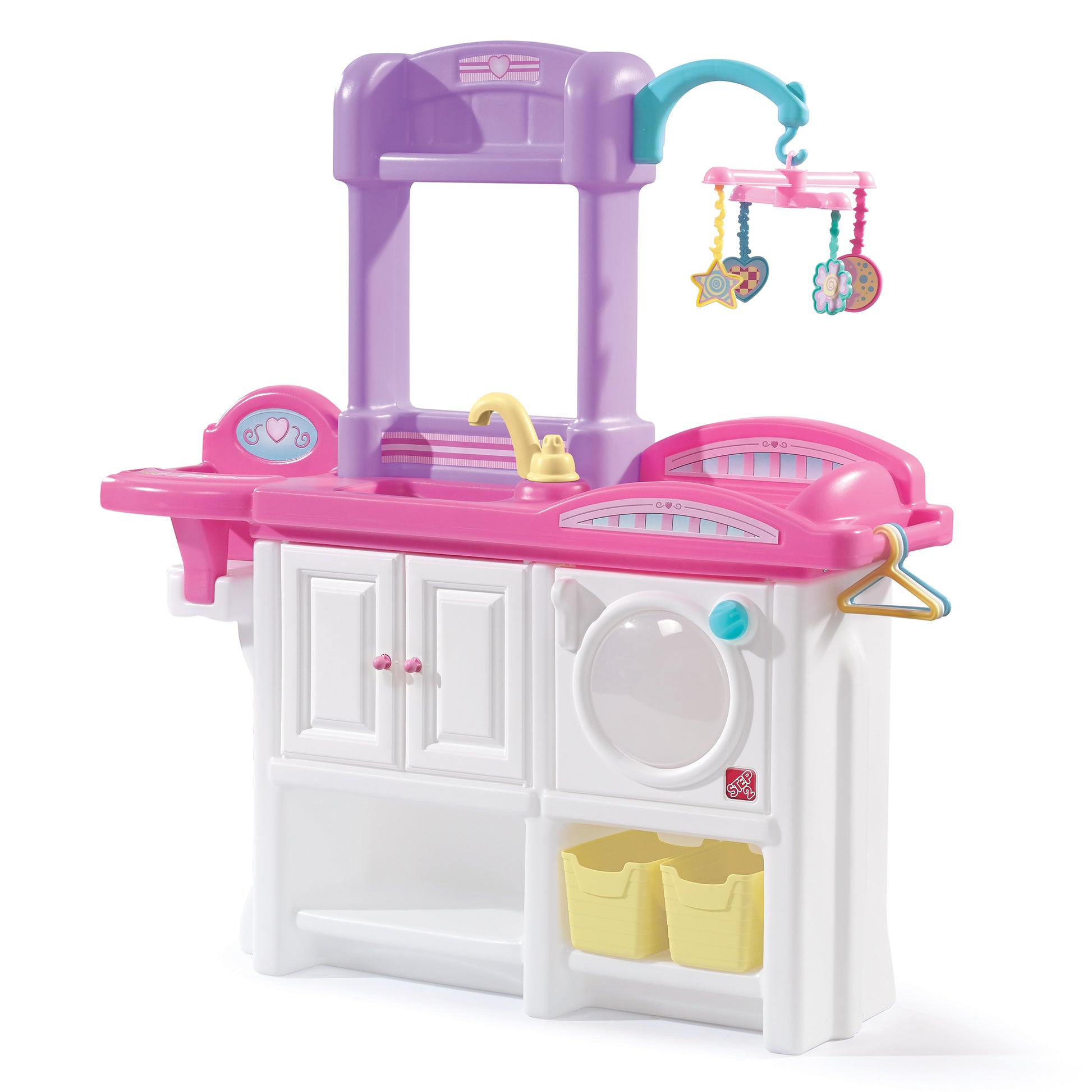 Los pequeños amarán jugar a mamá y papá con la Love & Care Deluxe Nursery de Step2! Esta guardería todo-en-uno cuenta con todo lo que los niños necesitan para cuidar de sus pequeñas muñecas. Ayuda a fomentar la empatía y el juego afectivo de crianza. Perfecto para cualquier recámara o salón de juegos! Hecho en EUA de partes de EEUU e importadas de China.