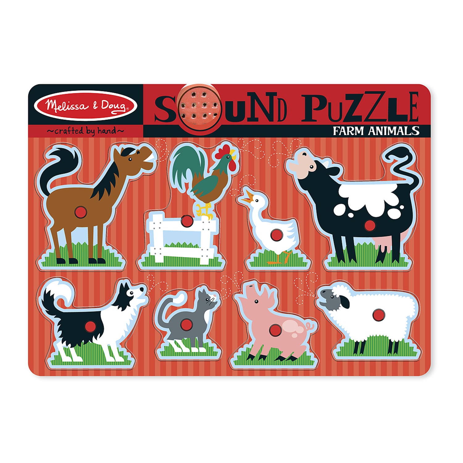 Cada uno de los felices animales "sonidos off" de la granja en su propia voz cuando las piezas del rompecabezas se colocan correctamente en el tablero, en este rompecabezas de ocho piezas de madera, su niño disfrutará de todos los sonidos y el color y mejorará su capacidad de escucha.