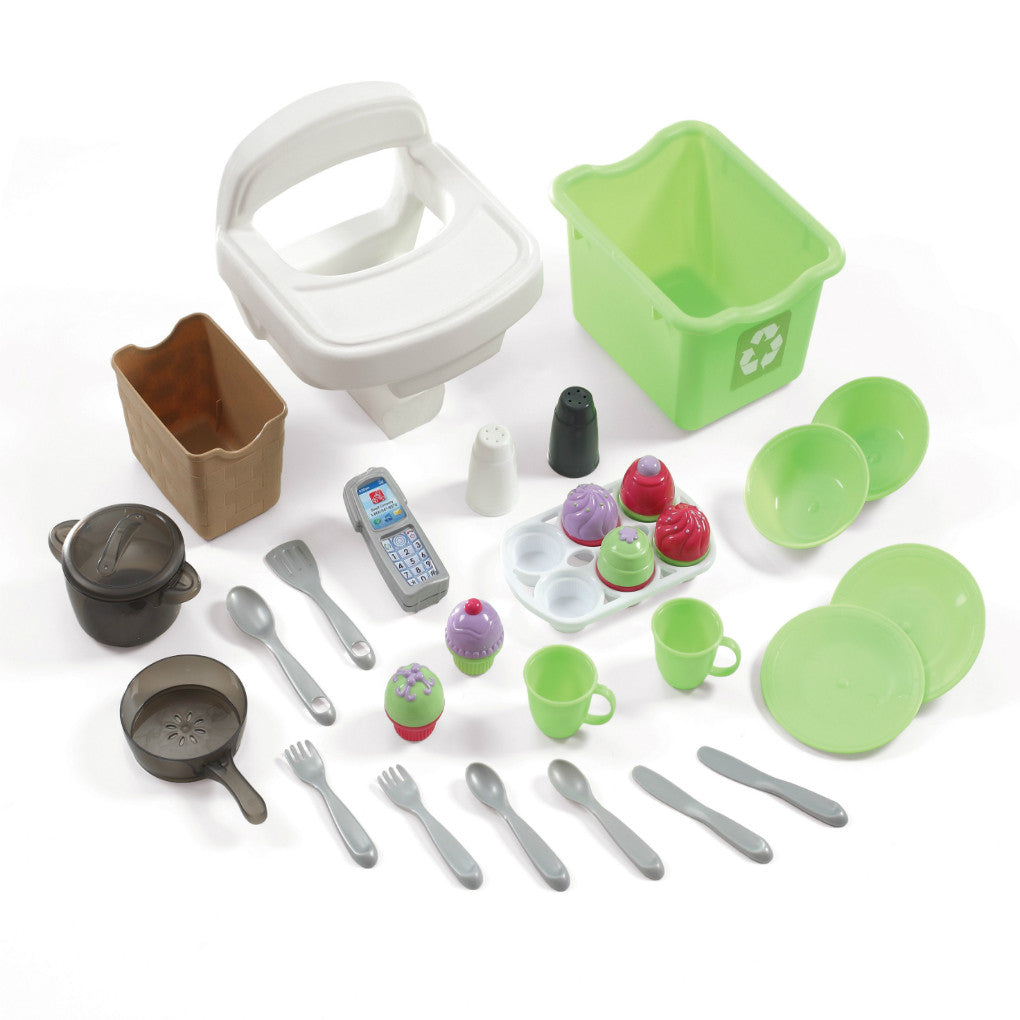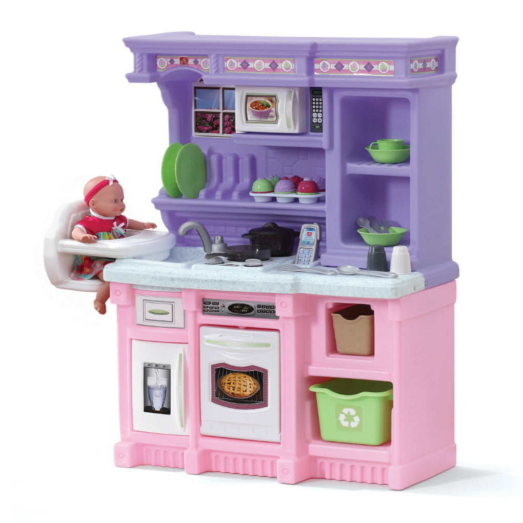 La Little Baker's Kitchen de Step2 es una cocina compacta, elegante y colorida para mini chefs. Esta cocina de juguete expande la imaginación de las niñas que pretenden cocinar, hornear y hasta alimentar su mu̱eca en la silla alta incorporada. La diversión imaginativa nunca termina con esta duradera cocinita de color púpura y rosa. Hecho en EUA de piezas nacionales e importadas. Algunos de los accesorios y productos electrónicos son fabricados en China.