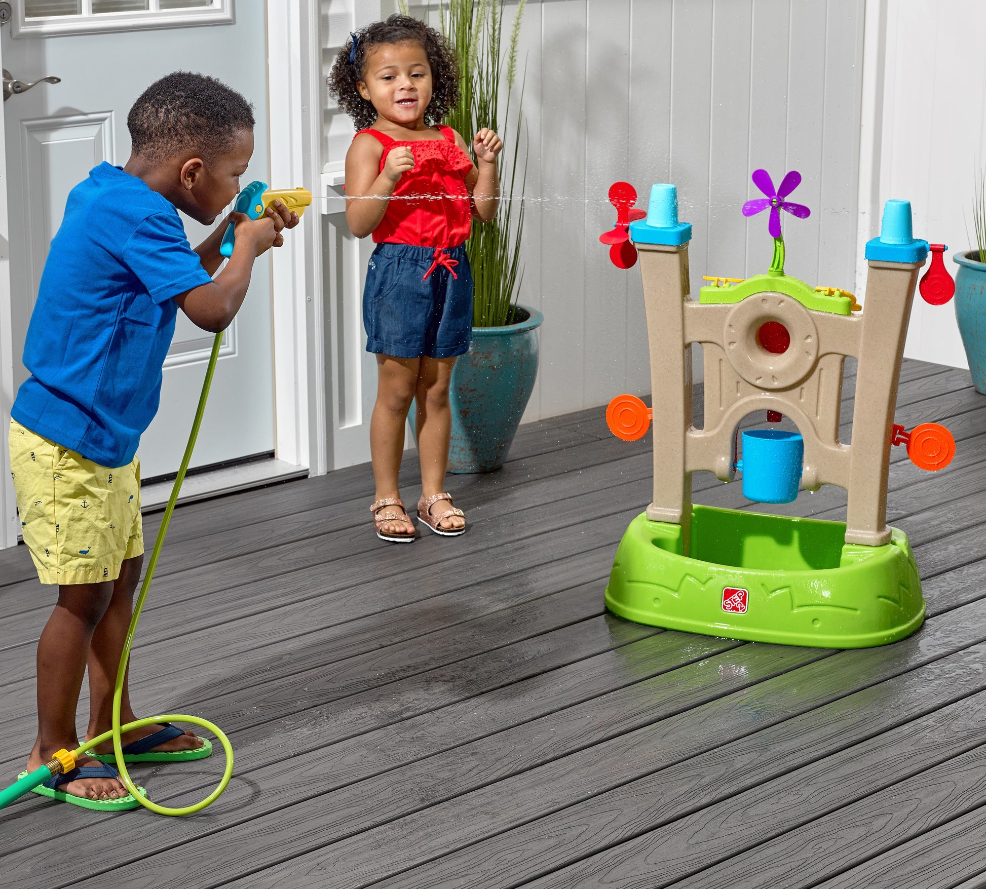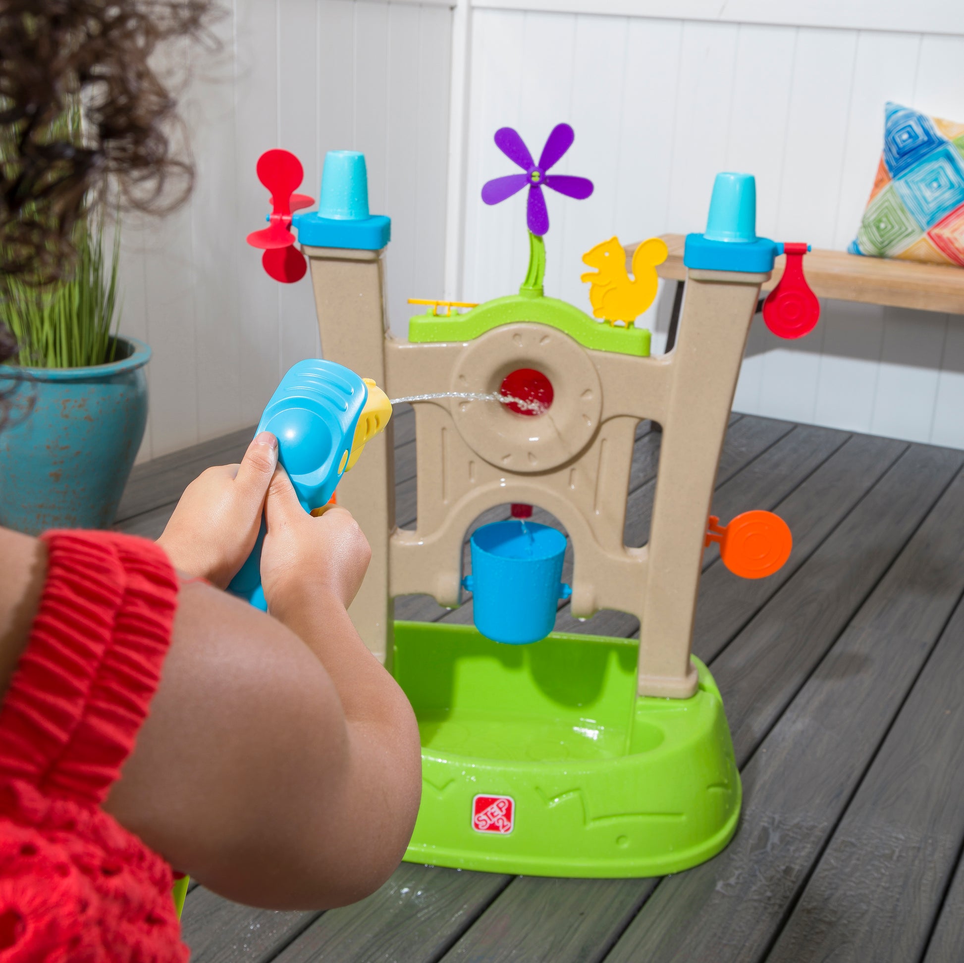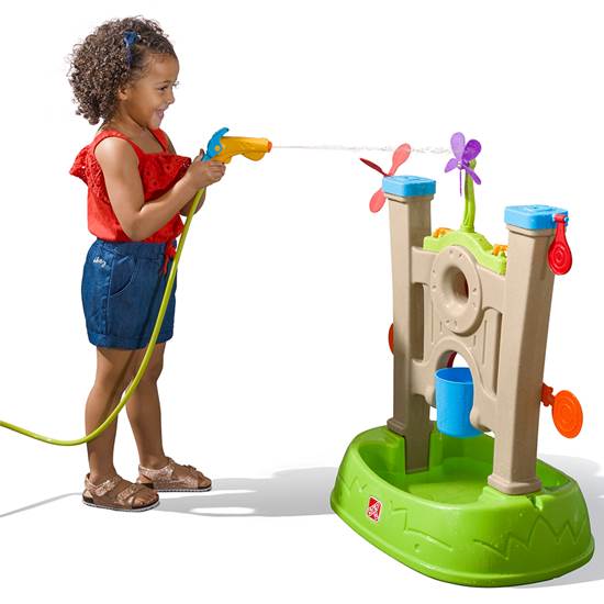 ¡Trae la emocionante diversión acuática con juegos de destreza a tu patio trasero con Step2 Waterpark Arcade! Toneladas de objetivos de juegos de agua para niños están alineados y listos para que los pequeños los salpiquen con el lanzador de agua, todos asegurados con una pared grande y una base ancha para mayor estabilidad. ¡Conecte fácilmente el lanzador de agua a una manguera de jardín estándar para que el agua fluya y comience a jugar fuera del agua! Los más pequeños practicarán sus habilidades motoras finas mientras aprietan el gatillo para usar el lanzador de agua para disparar agua a cada objetivo, derribándolos y activando los hiladores para crear un gran chapoteo. Golpea el centro de la diana para llenar el cubo de derrames que se encuentra debajo. ¡Quien haga que el cubo se derrame en el recipiente es el ganador! El juego de agua para el estilo de un solo usuario de los niños es una excelente manera de enseñar a los más pequeños sobre el intercambio, la paciencia e incluso la amabilidad animando a los amigos mientras golpean cada objetivo. Hecho en los EE. UU. De piezas importadas y estadounidenses.- Practique la coordinación mano-ojo y las habilidades motoras finas con el lanzador de agua para disparar agua a los objetivos.