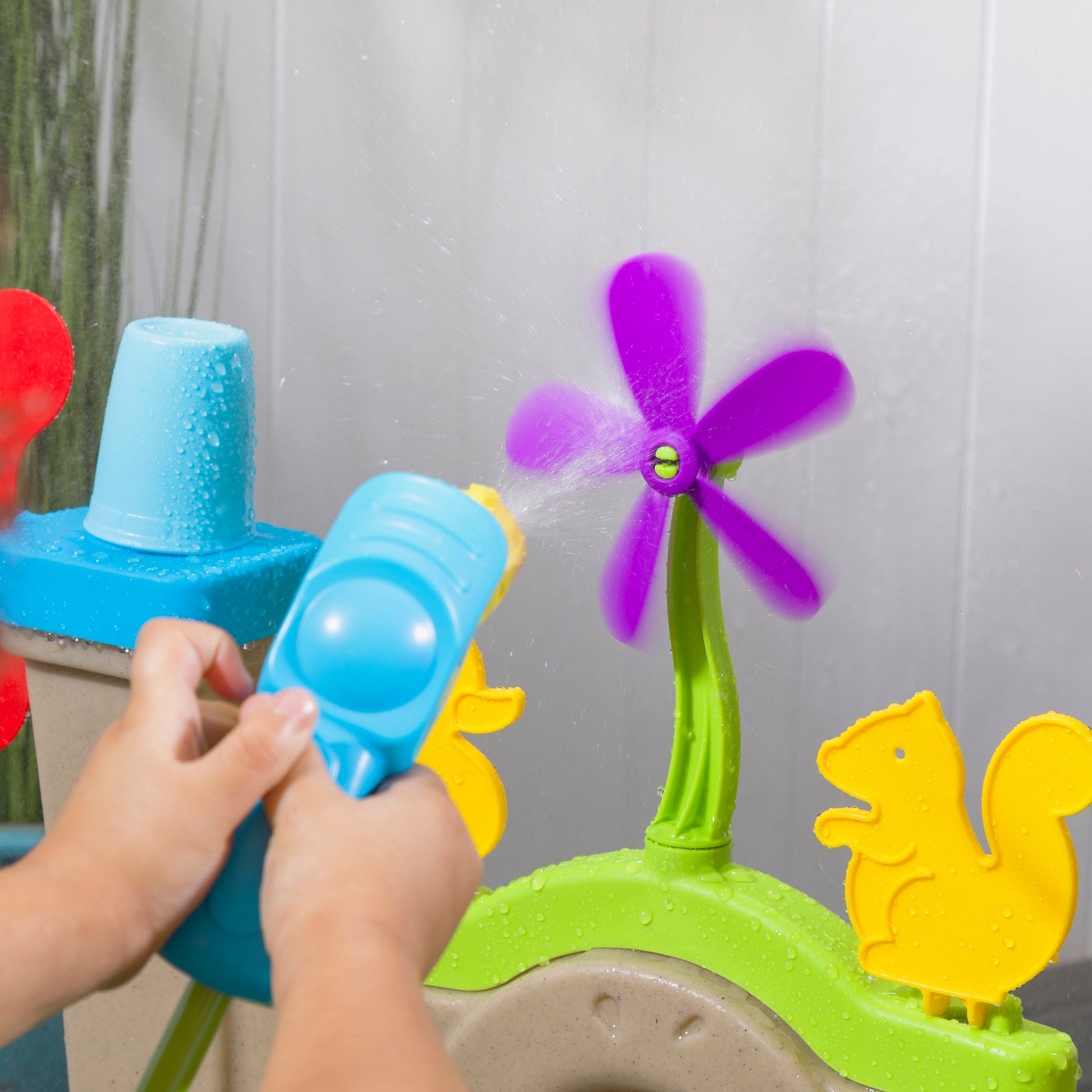 - En la caja: Arcade de pared con objetivos y lavabo, los accesorios incluyen un lanzador de agua con manguera, dos tazas, hilanderos y más.
