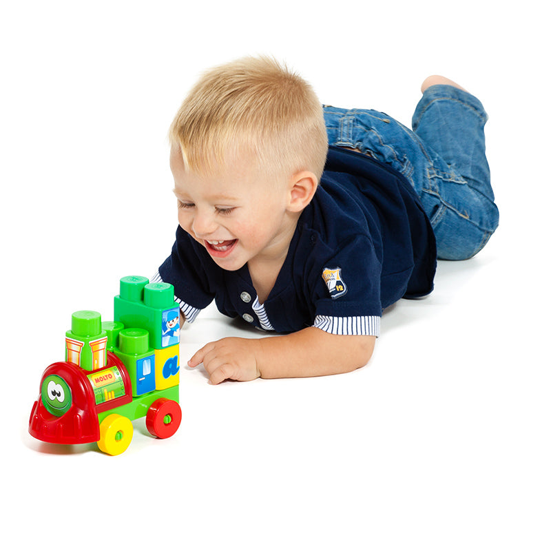 Nuevo juego de actividades de Molto. Construye tu tren con piezas de colores. 70 piezas con colores distintos, tus hijos podrán aprender las letras y números jugando y pasándolo bien.