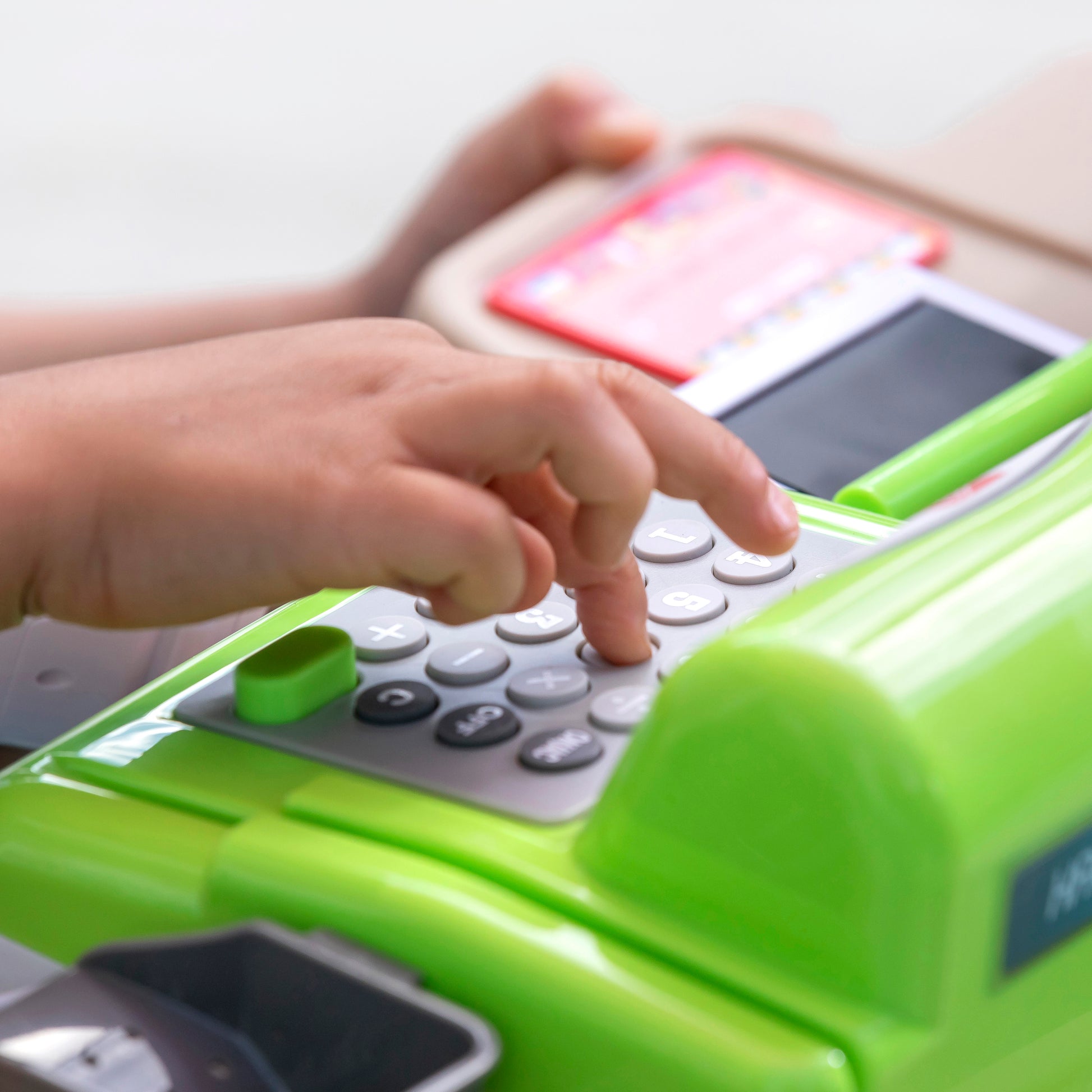 - Los pequeños pueden usar la caja registradora electrónica para realizar una venta, cobrar el peaje o cobrar por la gasolina.